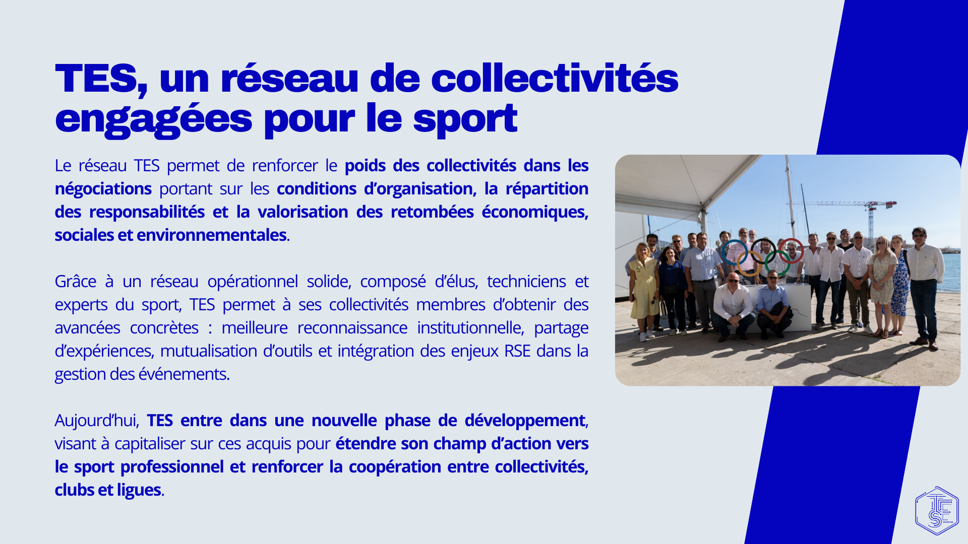Une conviction forte : les territoires sont au cœur de l’attractivité, de la durabilité et de l’héritage. Une ambition claire : élargir progressivement la portée de TES jusqu’au sport professionnel tout en continuant à renforcer la coopération entre les territoires et les organisateurs d’événements sportifs.