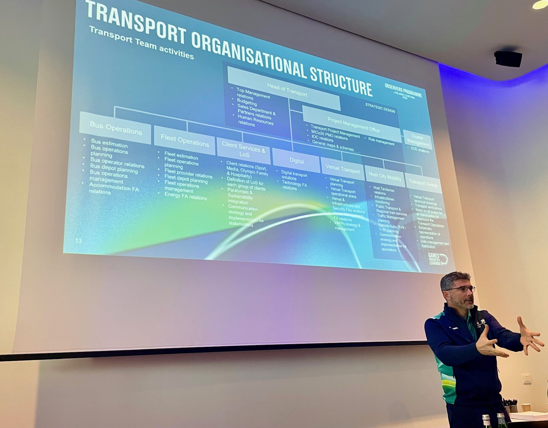 Les participants ont pu assister à des conférences et ateliers de la part d’acteurs majeurs de l’organisation des Jeux, de l’IOC, de la Fondazione Milano Cortina 2026, de la direction des transports du comité d’organisation pour les enjeux de mobilité, sur des enjeux d’infrastructures temporaires, de la Ville de Milan et du Consulat général de France et l’Ambassadeur pour le sport.